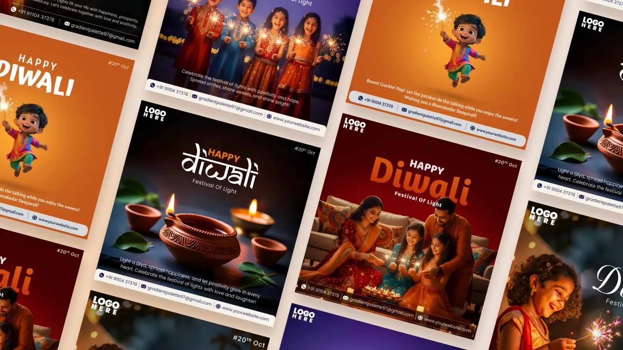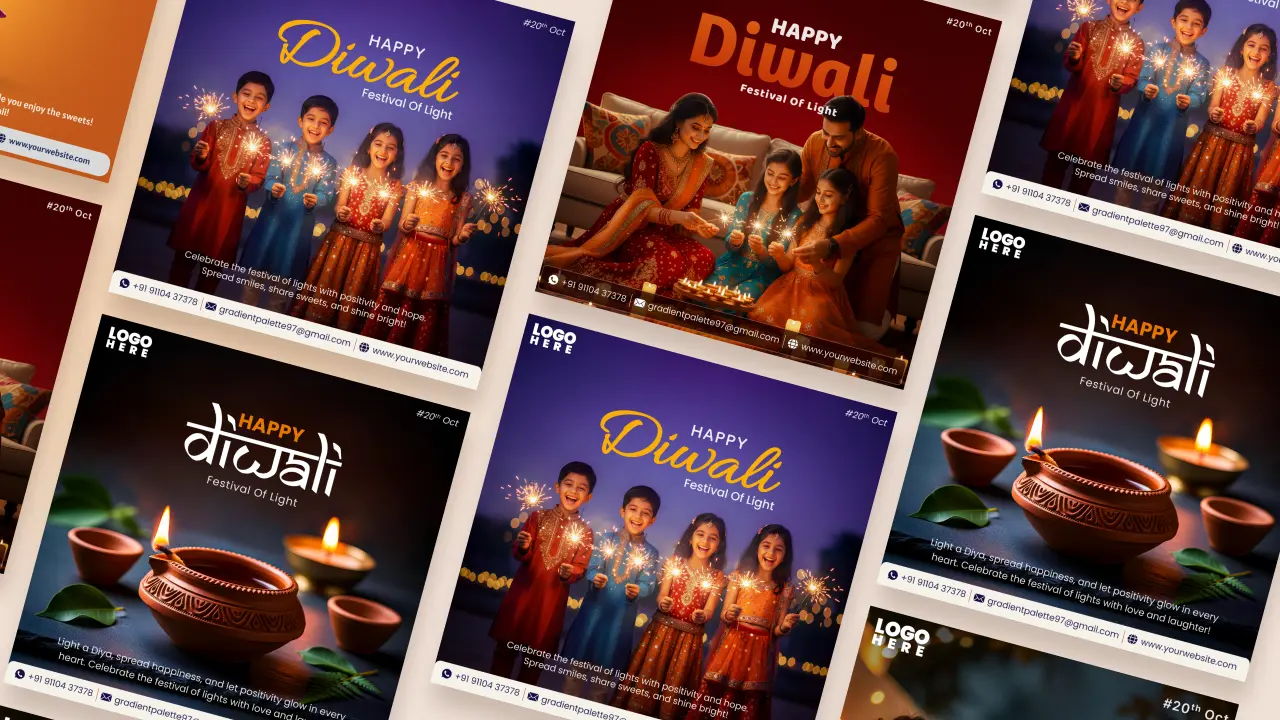 Celebrate the Festival of Lights with eye-catching Diwali poster design templates from Gradient Pallatte!