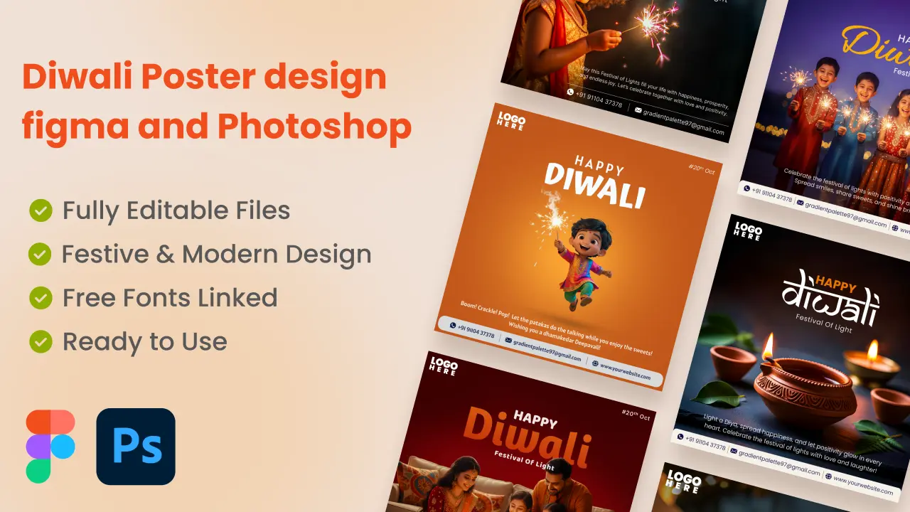 This exclusive pack includes 5 professionally designed posters that help your brand shine bright during this festive season. Whether you’re promoting a Diwali sale, sharing a social media post, or designing festive campaigns for clients — these templates are your go-to creative toolkit.