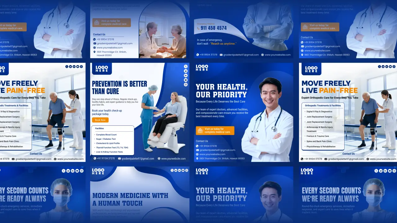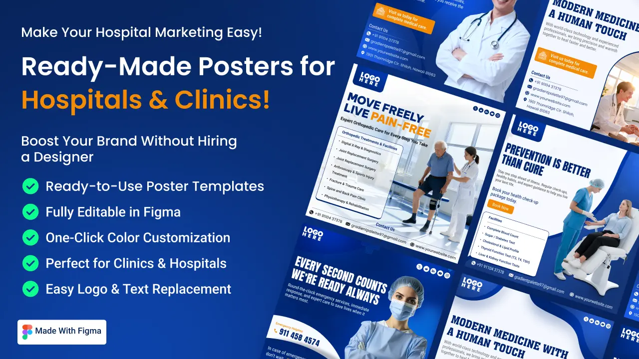 Take your hospital or clinic marketing to the next level with our editable poster template pack.